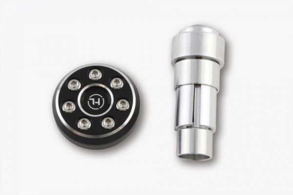 Highway Hawk Highsider handlebar end "CONERO TYPE 1" aluminum black Universalfor handlebars with an inner ...
