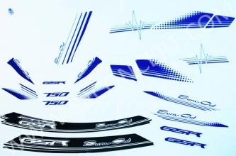 Decoratie kit Burn Out" voor benzinetank + body voor en achter + zijstukken radiator + wielen - blauw/wit"