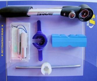 Vering van het merk Goodridge remmen , Gryyp bandenreparatie , Hyperpro vering , Repsol olie of Optimate batterijladers