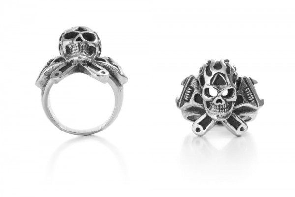 Highway Hawk Ring Signet Ring "Skull with Tool Creak" Stainl ...