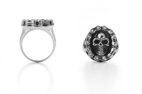 Highway Hawk Ring Signet Ring "Skull with Chain" Stainless S ...